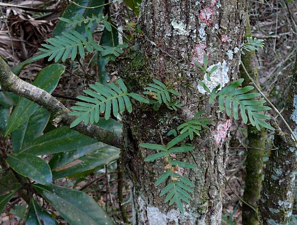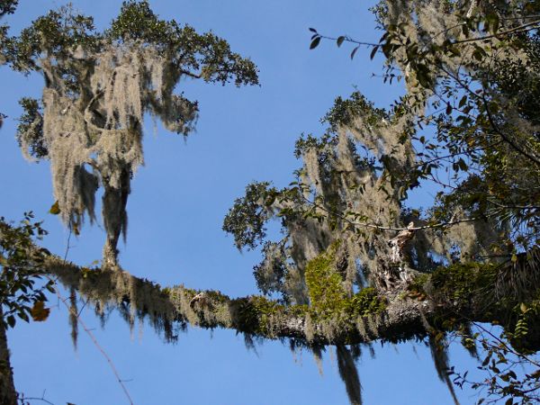 With the recent rain, the resurrection ferns were still green. These and other epiphytes cover the oak boughs at this park.
