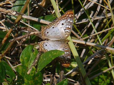 White peacock butterfly. We also saw a few common buckeyes, and a pink rattlebox moth.