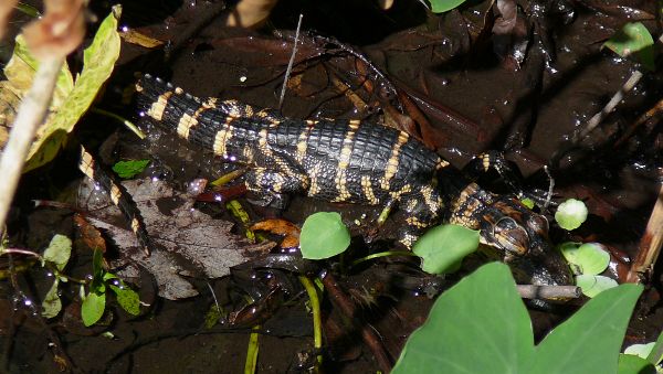 Baby alligator. We saw three adults in the park as well, sunning themselves. Perhaps it was a bit too cold for hunting.